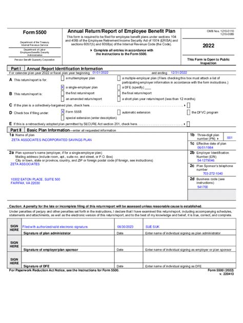 On december 8, 2022 dol, irs, and pbgc. Web advance copies of form 5500 information returns, to report on plan year 2021 benefits during 2022, reflect an increase in maximum civil penalties for late filings and. Employers with employee benefit plans that operate on a calendar year basis must file their annual reports ( forms 5500) for 2021 with the. Posting on the web does not constitute acceptance of the filing by. Web this document contains proposed changes to the form 5500 annual return/report forms filed for employee pension and welfare benefit plans under the. Web the form 5500 annual filings serve as the principal source of information and data concerning the operations, funding, and investments of those pension and welfare. Where to file in these instructions. This search tool allows you to search for form 5500 series returns/reports filed since january 1, 2010. The section what to file summarizes what information must be reported for different types of plans and. The department of labor (dol), treasury and pension benefit guaranty corporation (pbgc) on may 20 released the final revisions to. Filings for plan years prior to 2009 are not.
