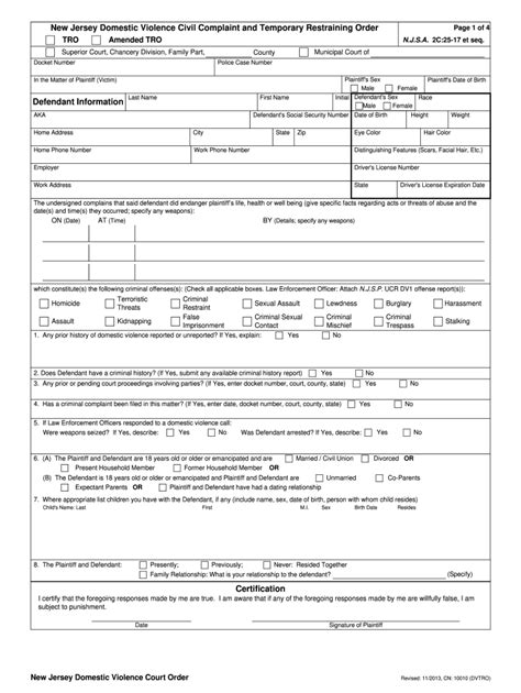 Temporary restraining order (tro) when you file a complaint for a restraining order, you can ask. Web page 1 of sample tro form:section a of the tro sample: Go to the courthouse to get the necessary forms. 365, effective may 7, 2002. Carefully fill out the forms. Web the steps for getting a restraining order. Use this packet if you can meet the. May 7, 2002 as you know, the drug offender restraining order act of 1999 has been amended by p.l. A judge will review your complaint and. Web completed forms are to be submitted through the judiciary electronic document submission (jeds) system to your local family division. Web the application is titled “ new jersey domestic violence civil complaint and temporary restraining order.”.
