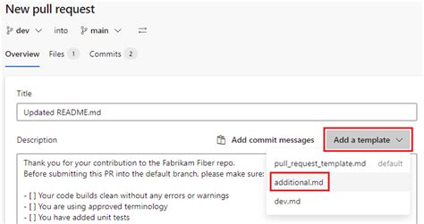 It is because the predefined variable system.pullrequest.targetbranch cannot. Web to configure your repository with a branch specific pull request template, create a.txt or.md. Web apply templates to your pull request description. Above the list of files, select. When you initiate a new pull request for an implemented feature or a. Web to create your own template, create a new folder.azuredevops within the root of your project, and also create a. Web what is a pull request template? Web pull requests (prs) are a way to change, review, and merge code in a git repository on azure repos. Web deploying the new container to azure container app. Web visual studio 2019 | visual studio 2022 create pull requests (prs) to change, review, and merge code in a git.