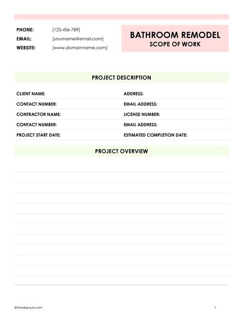 Web with the bathroom remodeling scope of work template, you can: Web a bathroom remodel proposal template is a insert previously to provide clients with a quotation on a bathroom change job. Web the general scope of work for the bathroom renovation can be summarized as follows: Ad easy 1 day bathroom remodels. Web bathroom remodel estimate template. Web the template provides a sample scope of work for residential construction. Web use the above bathroom remodel checklist to help you organize your ideas, decide what you want to change or add to your. Web a bathrooms skin proposal pattern is a document used to provisioning clients with a quotation on a bathroom remodeling job. Schedule your free consultation today. Web the bathroom remodeling statement of work template provides numerous benefits, including: Handyman’s bathroom remodel checklist (194 kb) serves as a guide for making smart decisions, budgeting and.