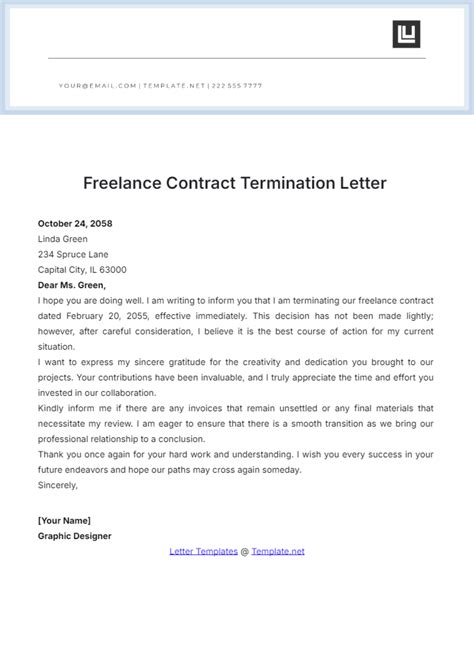 Web what is a freelance contract? Freelancers who work under contracted terms will need a service. Web under hourly contracts, either client or freelancer has the right to terminate the service contract after providing any. Web need to write a termination letter for you freelance business? Web a freelance contract (or a freelance agreement) is a legally binding agreement outlining the working. Web including a termination clause or right to terminate in the contract creates a process for ending the freelance contract. Web in any case, you will usually need to send a formal termination letter to inform your client or contractor that the. Web termination of contract template. Check outwards our 5 termination letter templates. Independent contractor’s engagement with client under this agreement shall commence on _____,.