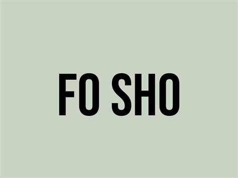 Web fo sho is a slang term. (streets.) i’ll be there on time fosho. Web fo sho is an abbreviated version of for sure. it is typically said in response to a question to express agreement with a comment or give an affirmative answer to a question. In the usa, and by the standards i’ve been using this term or my whole life, it’s simply slang for “for sure”. It is one of the most commonly used acronyms in online chat and texting. It is an internet acronym. Web ho fo' sho. Fo sho stands for for sure. Web answer (1 of 9): Web fo sho slang for sure;