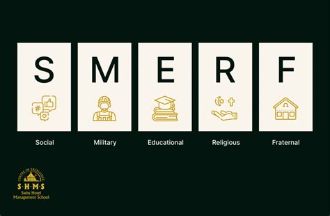 In the hospitality industry, an acronym for social, military, educational, religious, fraternal, indicating a market segment for the sales of banqueting rooms and. Social military educational religious and fraternity. Social, military, educational, religious, fraternal (market segment) smerf: Web 3 meanings of smerf abbreviation related to hotel: Web smerf is comprised of social, military, education, religious, and fraternal groups (think reunions). Social, military, educational, retiree, fraternal (associations) showing only slang/internet slang definitions ( show all 5 definitions) note: Web what does smerf stand for? Sports, military, educational, religious, fraternal (market segment) smerf. Social, military, educational, religious, and fraternal. Web social, military, education, religious, and fraternal what does smerf stand for?
