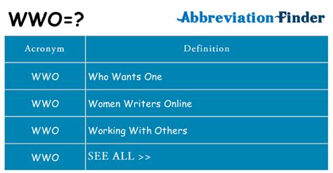 What Does Wwo Mean. To excite to enthusiastic admiration or approval. Your abbreviation search returned 8 meanings link/page citation category filters all definitions (8) information.