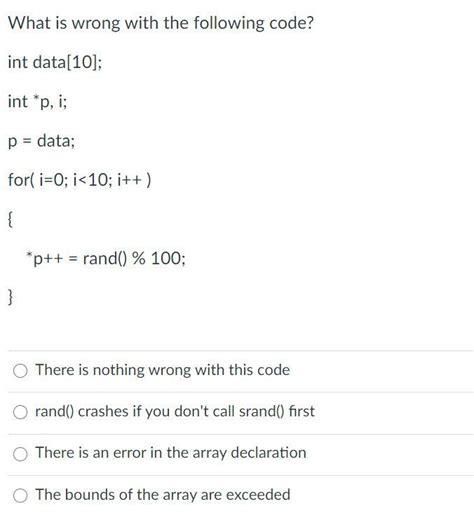 Web question 35 what is wrong with the following code? Web what is wrong in the following code? Print (n) print ('all done') this loop will run forever the print (‘all done’) statement should be indented four spaces there. Web drag and drop the code statements to create a code segment that will prompt the user for a letter. Web determine what is wrong with the code, and submit a corrected version that works properly. Web a) the taxdue method should not be static. Count = while count >= 0: True a block is. Create trigger call_trigg after logoff on schema begin call drop_proc; Mark for review (1) points when. Web what is wrong with the following code?
