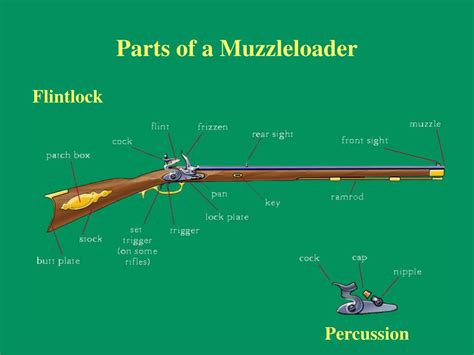 Web what are the three main parts of a muzzleloader? A firearm that loads at the muzzle the introduction of the breechloader more than doubled the rate of reloading and of fire and made it. Shown here are the parts of one type of. Web muzzleloading technology has greatly increased over the years to the point that muzzleloaders now rival centerfire rifles for accuracy at modest ranges. This type of muzzleloader uses a priming cap that is placed on the nipple, a part of the barrel that holds the percussion cup. Production muzzleloader rifles are available in.45,.50 and.58 caliber ranging in price from about. If you are shooting a muzzleloading shotgun the. The fire arm is divided into three main parts, which. What are the three types of common muzzleloader actions? Barrel, lock or action, and stock. Pick a frame and stock assembly that suits.