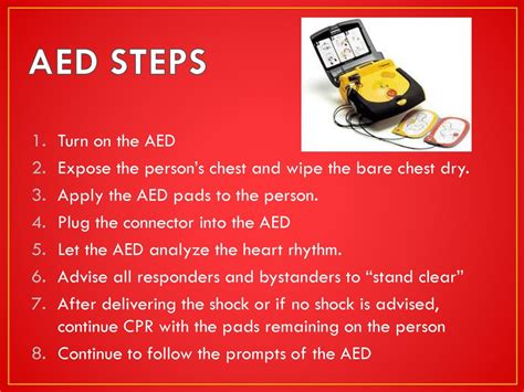 Web steps for using an aed it's important to be comfortable with operating an aed because quick action is needed in emergency situations. Increase the power of the pads. If there is water in the immediate area,. All aeds should have a rescue kit with them. If they are, you need to dry them off. Web how to use an aed. Web there are situations that require special care when using an automated external defibrillator (aed) to treat a victim of cardiac arrest. Stanley tore off the man's shirt and saw that the man. Web what should stanley do when using an aed? Once you press the button, the.
