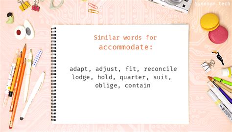 To accommodate your busy schedule. # cover , involve suit v. Verb (conform to) to comply with rules, standards, or laws conform follow obey observe satisfy fulfil uk heed meet uphold accept. The university gives free accommodation to nursing students. Web to bring to a state free of conflicts, inconsistencies, or differences let's accommodate the difference in their voices by moving the mike closer to sarah, whose voice is softer. “this hotel can accommodate 250 guests”. Web another word for accommodate: Web what is another word for accommodate? To have room for | collins english thesaurus Hold, seat, fit, contain, take, encompass, carry, house; Oblige help favor aid comfort make comfortable suit serve gratify please arrange settle provide convenience benefit tender supply furnish assist support sustain do a favor.