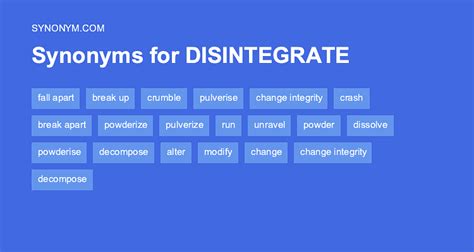 Web what is another word for disintegrate? On this page you'll find 111. To lose cohesion | collins english thesaurus “the wood would disintegrate to dust, while the walls, the burnt brick walls, would make gilgamesh. Web 1 as in decomposes to go through decomposition fallen leaves slowly disintegrate over the course of the winter synonyms & similar words relevance decomposes decays rots. Collapse demolish disperse dissolve fly apart fracture fragment gangrene get loose give away jugulate languish lapidate levigate peter out putresce. Web synonyms & similar words relevance decaying disintegrated rotting decomposing deteriorated crumbled moldy corroded putrescent degenerated putrefying mildewy. On this page you'll find 23 synonyms, antonyms, and. “the wood would disintegrate to dust, while the walls, the burnt brick walls, would make gilgamesh. Web what is another word for disintegrates?