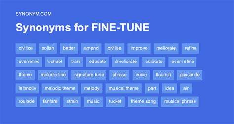 Another Word For Fine Tune . Adjust, calibrate, tweak, set, make improvements, and tune up. Adjust, regulate, put, match, adapt, establish, modify, tune;