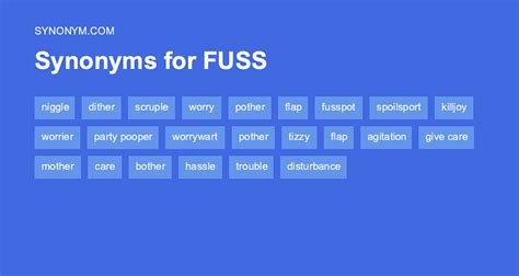 Another Word For Fuss. Web 1 (noun) in the sense of commotion definition to worry unnecessarily i don't know what all the fuss is about. On this page you'll find 157 synonyms, antonyms, and words related to fuss, such as:
