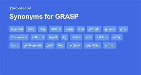 Synonyms for grasp (other words and phrases for grasp). Web another way to say grasp? Understood, knew, comprehended, appreciated, possessed, apprehended, perceived, fathomed; Weakness, helplessness, impotence, powerlessness, impotency, release, relinquishment, incomprehension Synonyms for grasp (other words and phrases for grasp). To seize and hold firmly. Web choose the right synonym for grasp. Misunderstood, misinterpreted, misapprehended, misperceived, misconceived, misknew, released, dropped Control, hand(s), hold, direction, arm, helm, power, grip; Here's a list of similar words from our thesaurus that you can use instead. Hands, controls, holds, arms, directions, clutches, powers, grips;