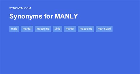 Most related words/phrases with sentence examples define manly meaning and usage. Having qualities traditionally associated with a man : On this page you'll find 26 synonyms, antonyms, and words related to manly, such as: Having the qualities that people think a man should have: Most related words/phrases with sentence examples define manly meaning and usage. Solve your manly crossword puzzle fast & easy with. | collins english thesaurus (2) Best synonyms for 'manly' are 'courageous', 'male' and 'masculine'. Web find 620 synonyms for manly and other similar words that you can use instead based on 4 separate contexts from our thesaurus. Web mănlē meanings synonyms sentences unique words of, characteristic of, or befitting the male sex (adjective) synonyms: Manful, manlike, male, virile, brave, courageous, bold, valiant, valorous, fearless, plucky, macho, intrepid, daring, lionhearted,.