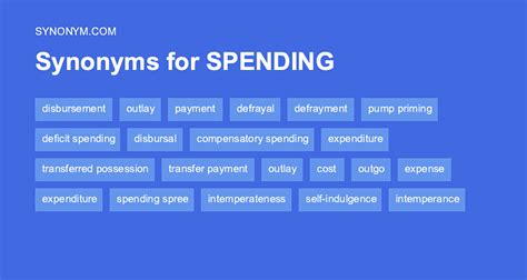 Another Word For Spending. On this page you'll find 135 synonyms, antonyms, and words related to spending, such as: Saving, making, earning, hoarding, acquiring, securing, realizing, procuring