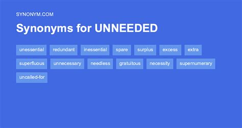 UNNEEDED Synonyms and Related Words. What is Another Word for UNNEEDED