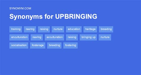 Another Word For Upbringing. Web what is another word for upbringing? ['ˈʌpˌbrɪŋɪŋ'] properties acquired during a person's formative years.