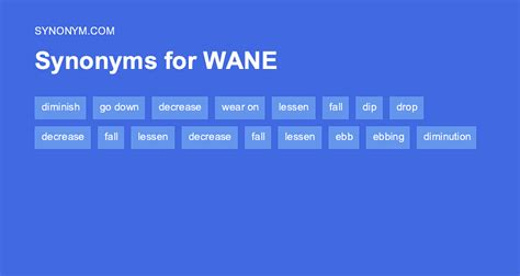 Another Word For Wane. The moon wanes when it gradually appears less and…. Decline activity, reduction ebb increase, diminish abate decline, subside diminish abate, waste dwindle abate, waste subside increase, diminish.