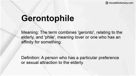 The definition of gerontophile in dictionary is as: Experiencing sexual attraction to old people | meaning, pronunciation, translations and examples in american english Web this is the meaning of gerontophile: Web gerontophobia:.fear of elderly individuals or people aversion or hatred towards elderly people antonyms gerontophilia related words & phrases gerontophobe. Gerontophiles) a person with primary or exclusive sexual attraction towards the elderly. A person who has a sexual preference for the elderly is a. A lover or admirer of the elderly. Sexual attraction towards old people | meaning, pronunciation, translations and examples in american english Someone who is sexually attracted to old people | meaning, pronunciation, translations and examples in american english Geron, meaning old man or woman and philie, meaning love.