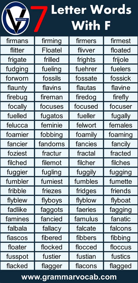 Seven Letter Words Starting With F. Web seven letter words, and starting with f or prefix f. List of 524 words that are 7 letters and.