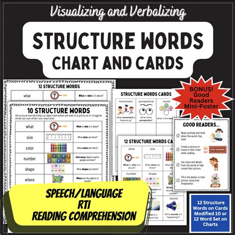 Structure Words For Visualizing And Verbalizing. Going through these words one at a time help develop imagery. This is a chart and individual cards for the 12 structure words for speech, language, and reading comprehension lessons.