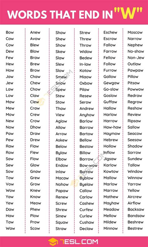 Words End With W. Add length, starts with, ends in, origins, and more with word search filters. Learn how to use the easiest words finder here.