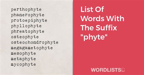 Words Ending In Phyte. Get the full list here! 7 letter words ending with 'phyte' oophyte 8 letter.