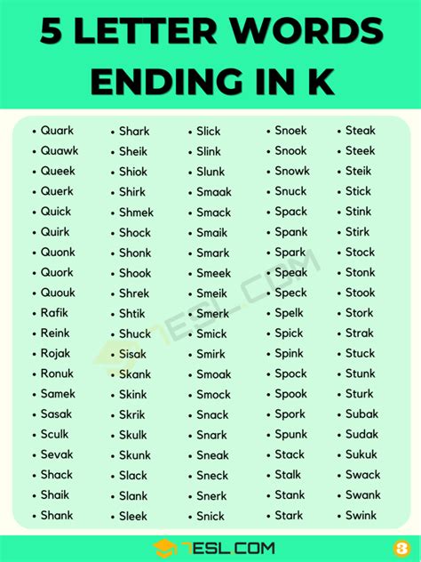Web words that end with k are commonly used for word games like scrabble and words with friends. Use the search option to filter âkâ ending words and find the word. Matches entered letters in any sequence anywhere in the word. This list will help you to find the top scoring words to beat the opponent. Add length, consonants, vowels, syllables, origin, spelling and more. Web five letter words beginning with a that end in l narrow down the possible plays in wordle so you get those green squares. Get all 220 5 letter k words that end in k for wordle, scrabble and words with friends here! Please see our crossword & codeword, words with friends or scrabble word helpers if that's what you're looking for. Web 10 rows the highest scoring scrabble word ending with k is kazachok, which is worth at least 30 points. Web 5 letter words ending in k by wordtips. Aardvark, aback, abelmosk, acock, afterdeck, aftershock, aircheck.